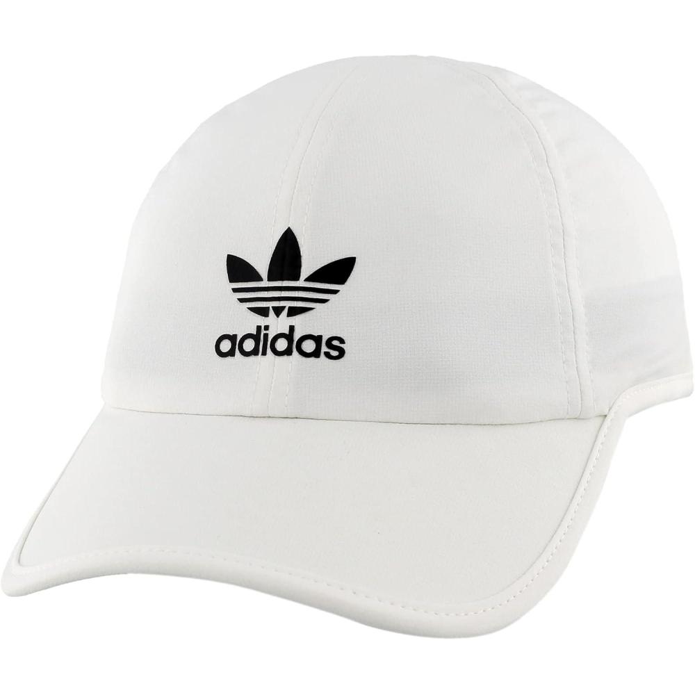 An everyday sporty cap from the front with statement making bold 3 stripes on the back. 6 panel precurved cap with a hook and loop closure ensure a perfect fit. premium heat transfer trefoil logo as well as a woven label on the strapback complete the look.