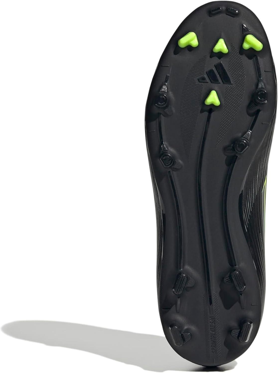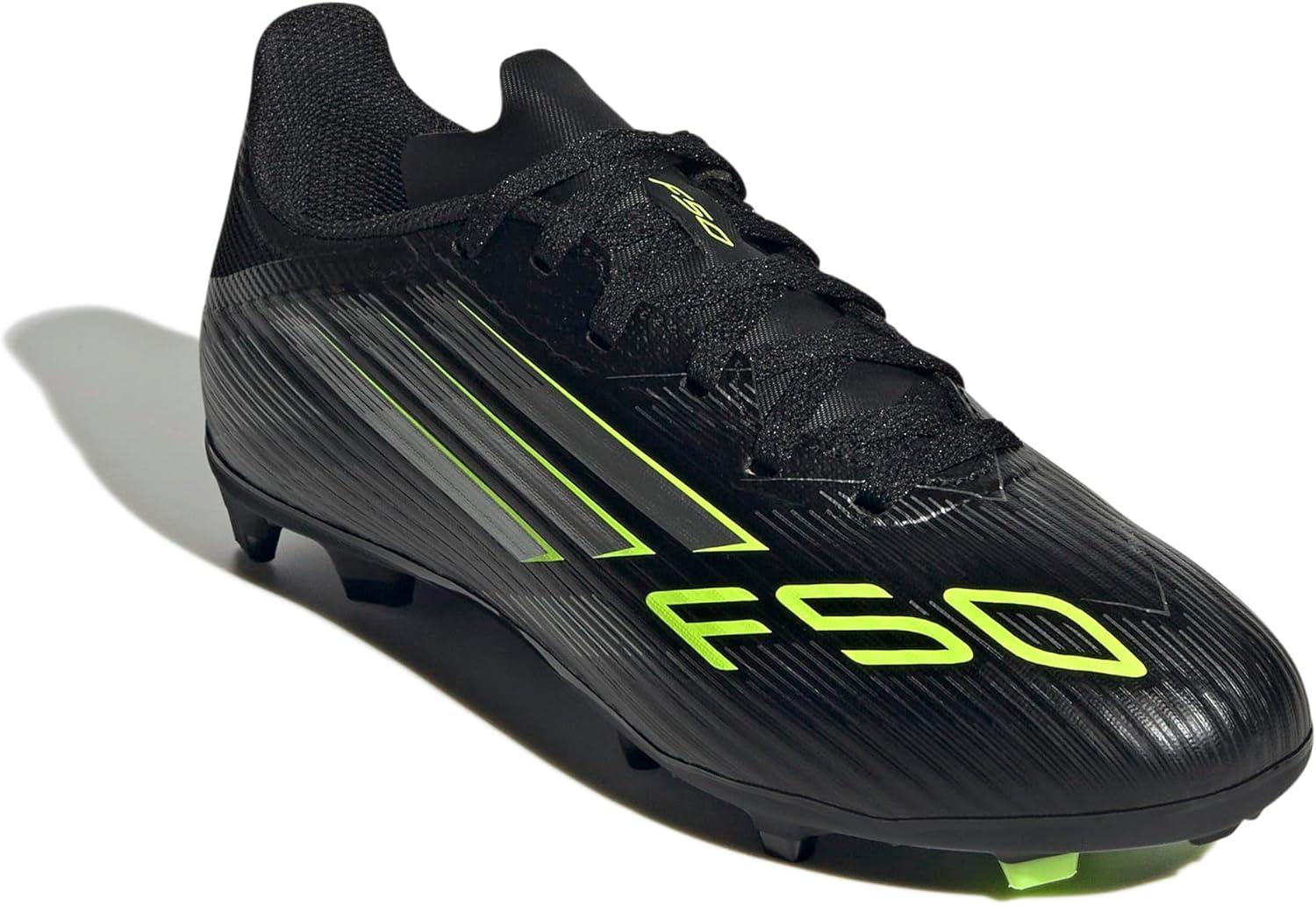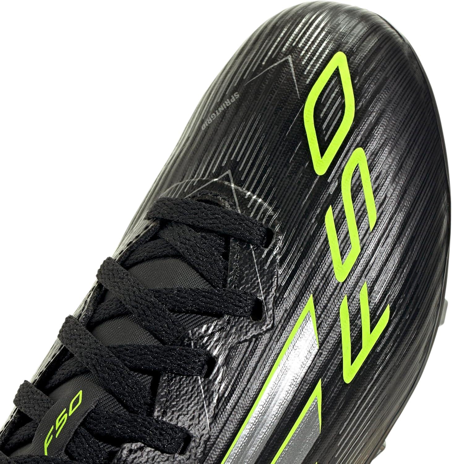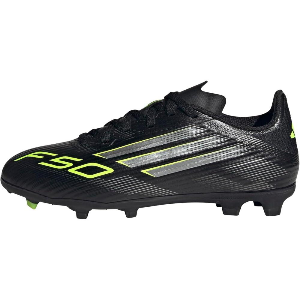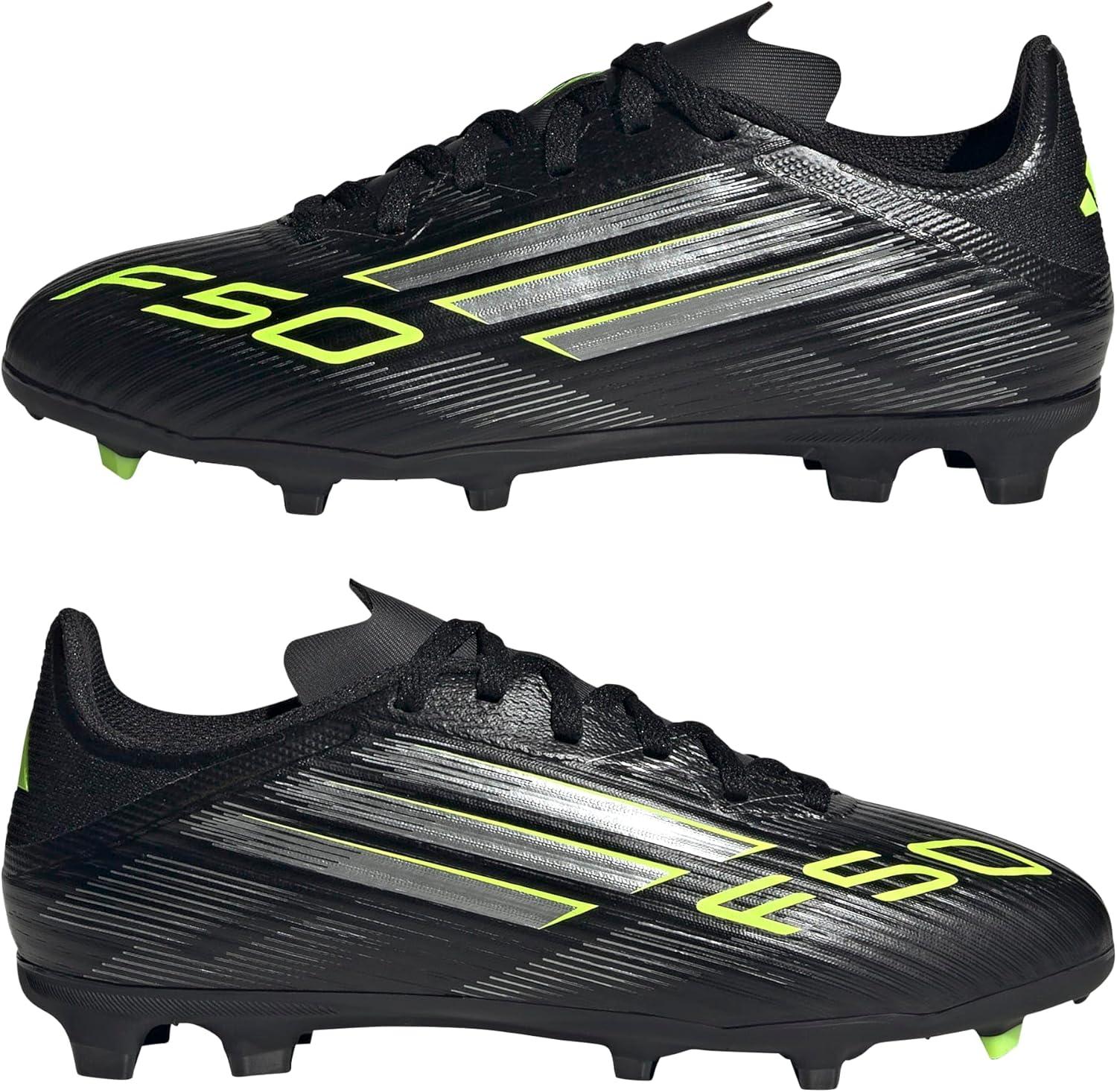 Adidas Unisex-Child F50 League Firm Ground/Multi Ground Soccer Cleats (Little Kid/Big Kid)(Black/Iron Metallic/Lucid Lemon)
