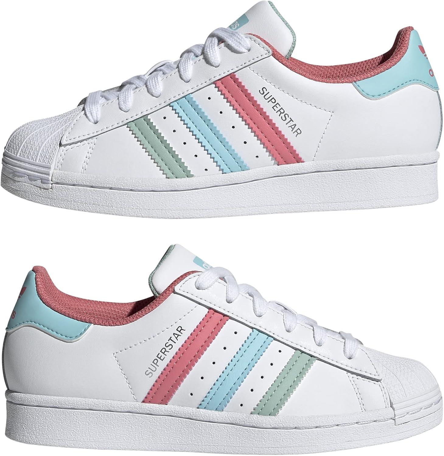 adidas Unisex-Child Superstar Legacy Sneakers(White/Hazy Rose/Hazy Sky)