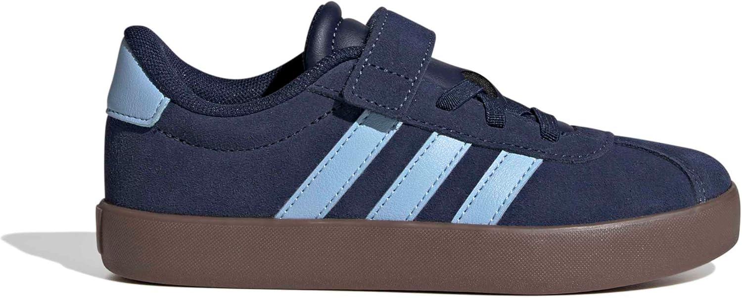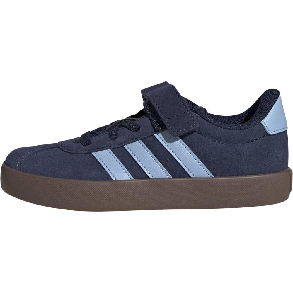 Adidas Unisex-Child Vl Court 3.0 Elastic Lace & Strap(Night Indigo/Clear Sky/Gum)