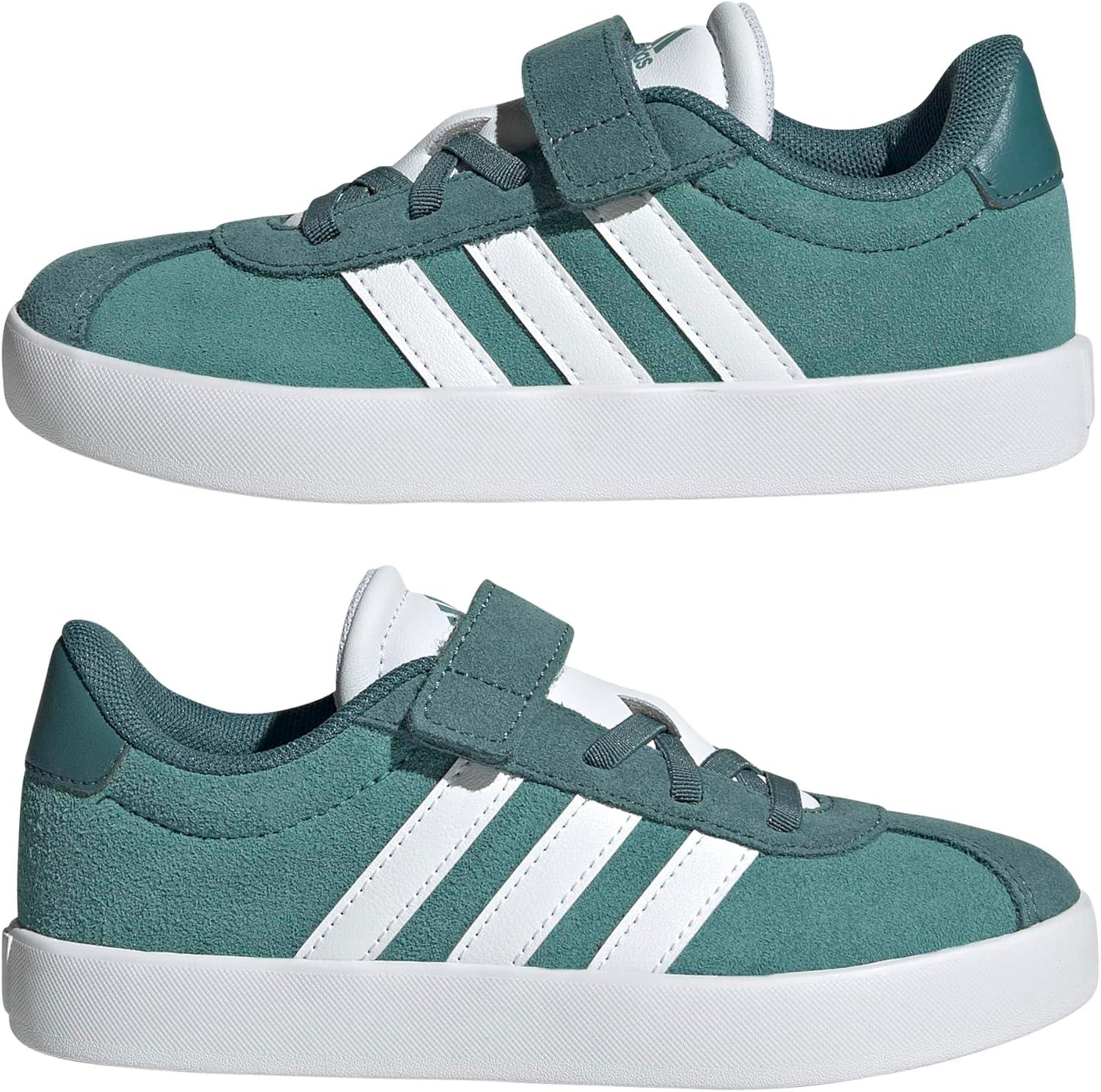 Adidas Unisex-Child Vl Court 3.0 Elastic Lace & Strap(Powder Teal/White/Preloved Teal)