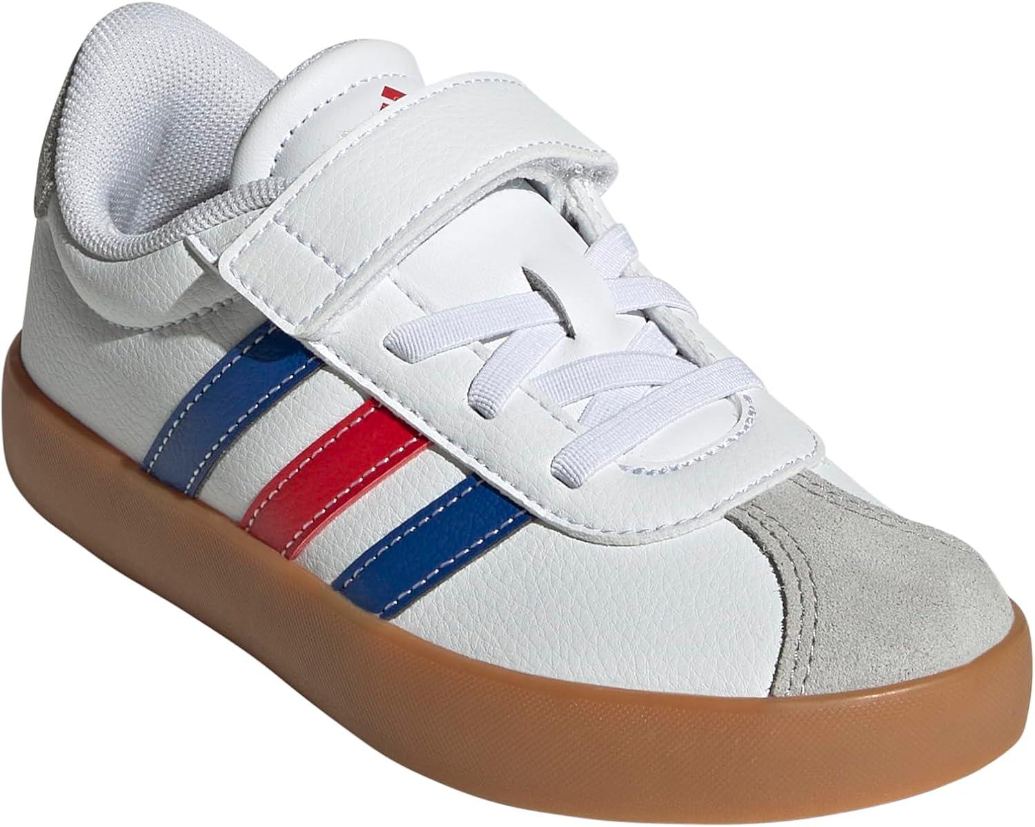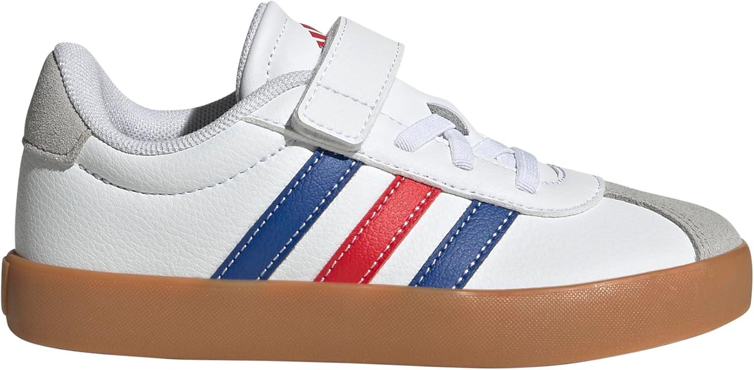 Adidas Unisex-Child Vl Court 3.0 Elastic Lace & Strap(White/Team Royal Blue/Better Scarlet)