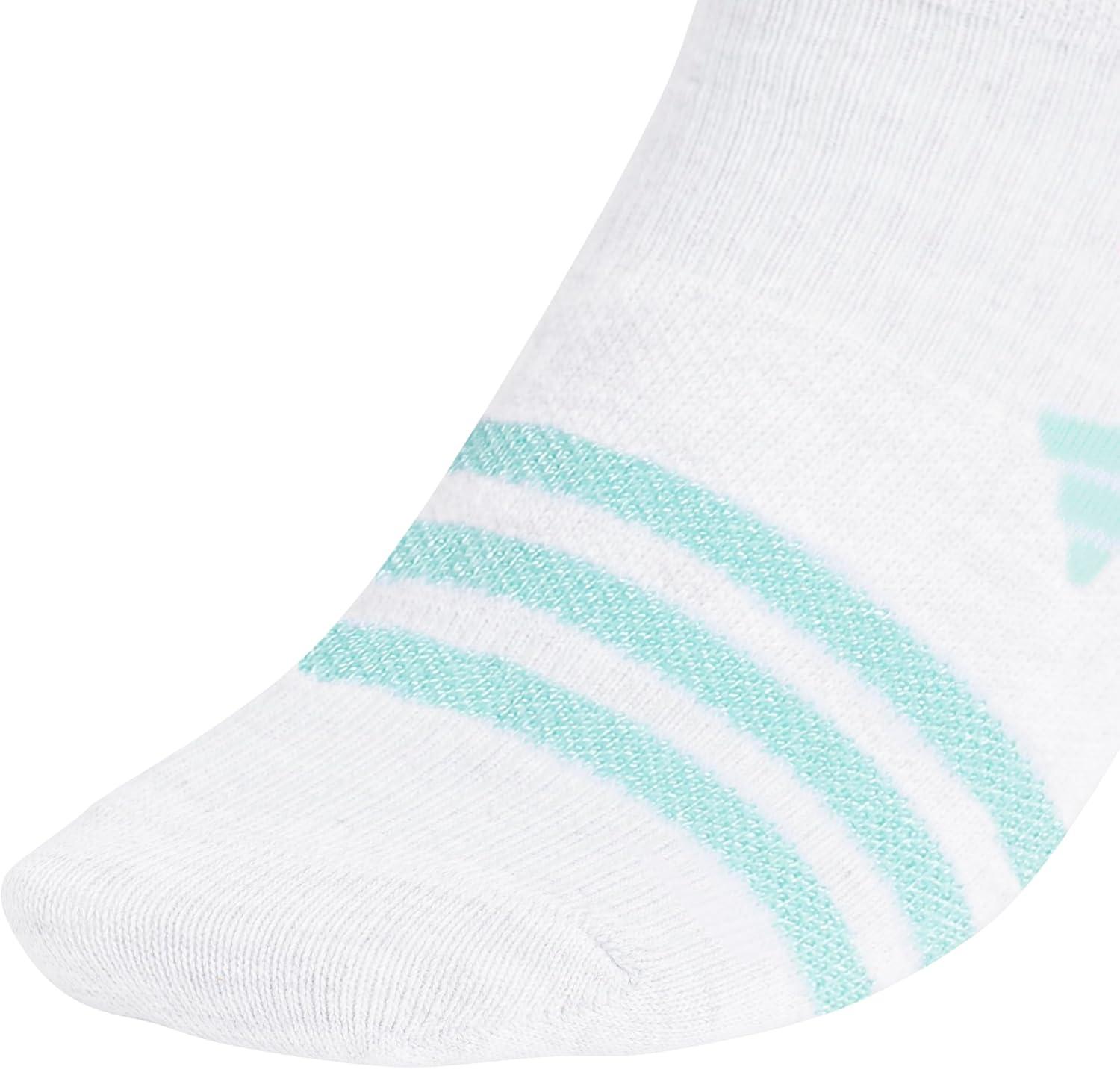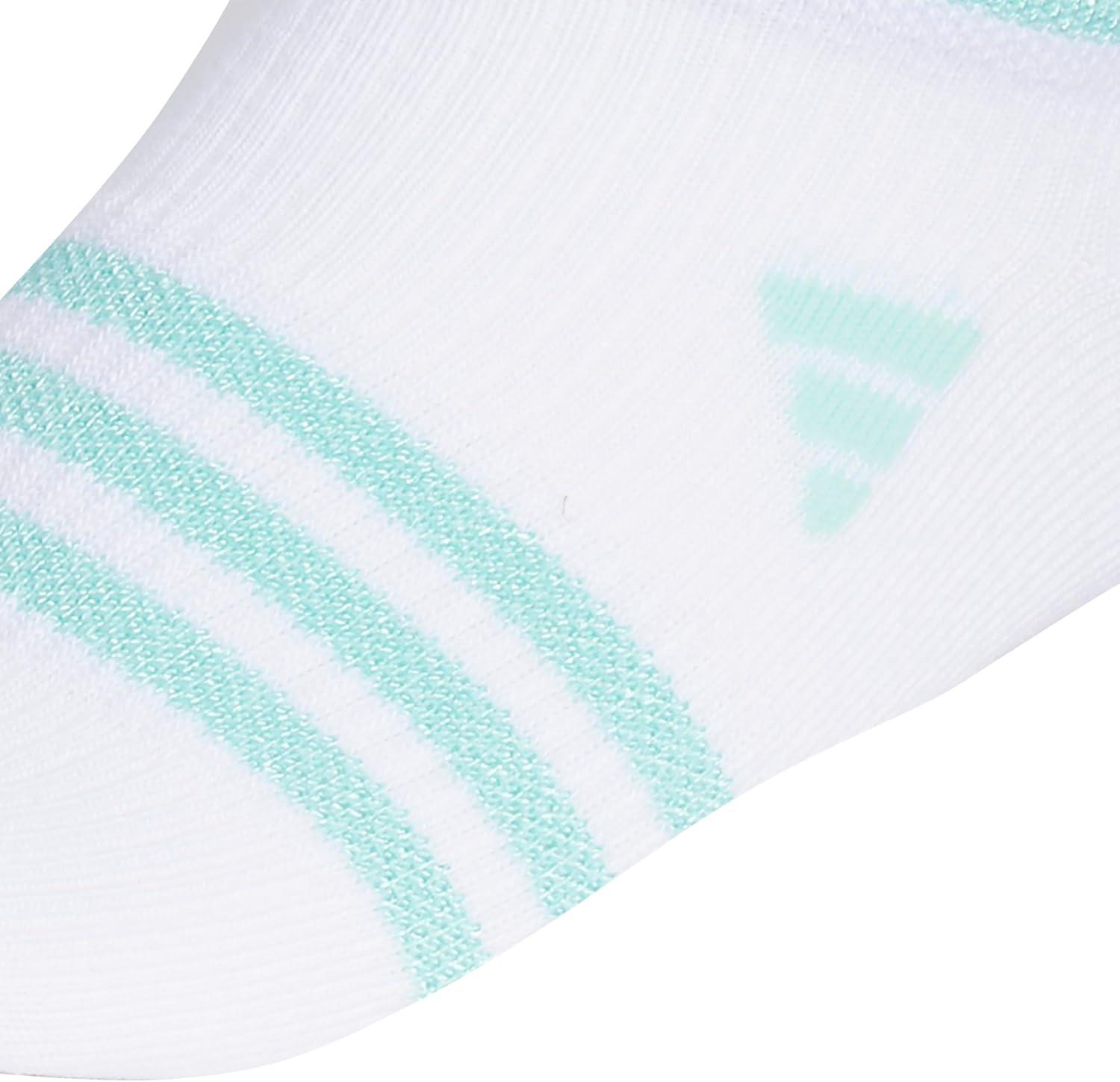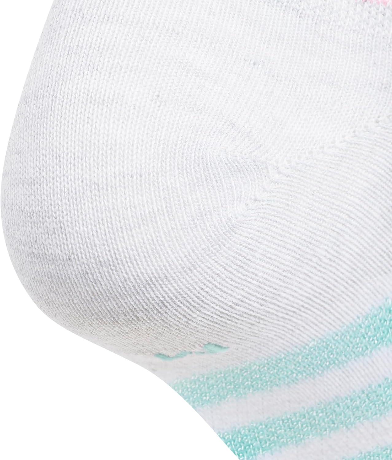 adidas Unisex Kids No Show Socks for Boys and Girls Youth (6-Pack) Superlite Breathable and Lightweight, Below Ankle(White/Shiny Energy Aqua/Shiny Bliss Pink/Girls/3.0)