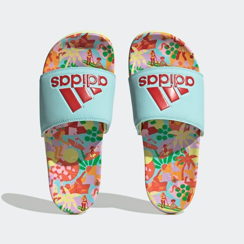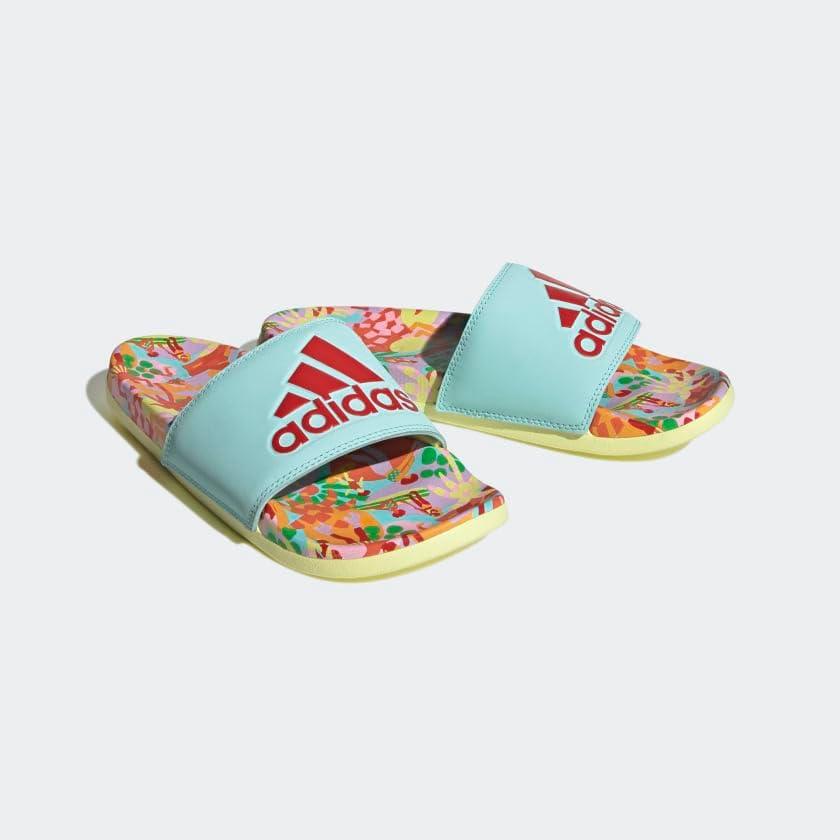 adidas Women’s Adilette Comfort Slide Sandal(Clear Aqua/Lush Red/Pearl Citrine)