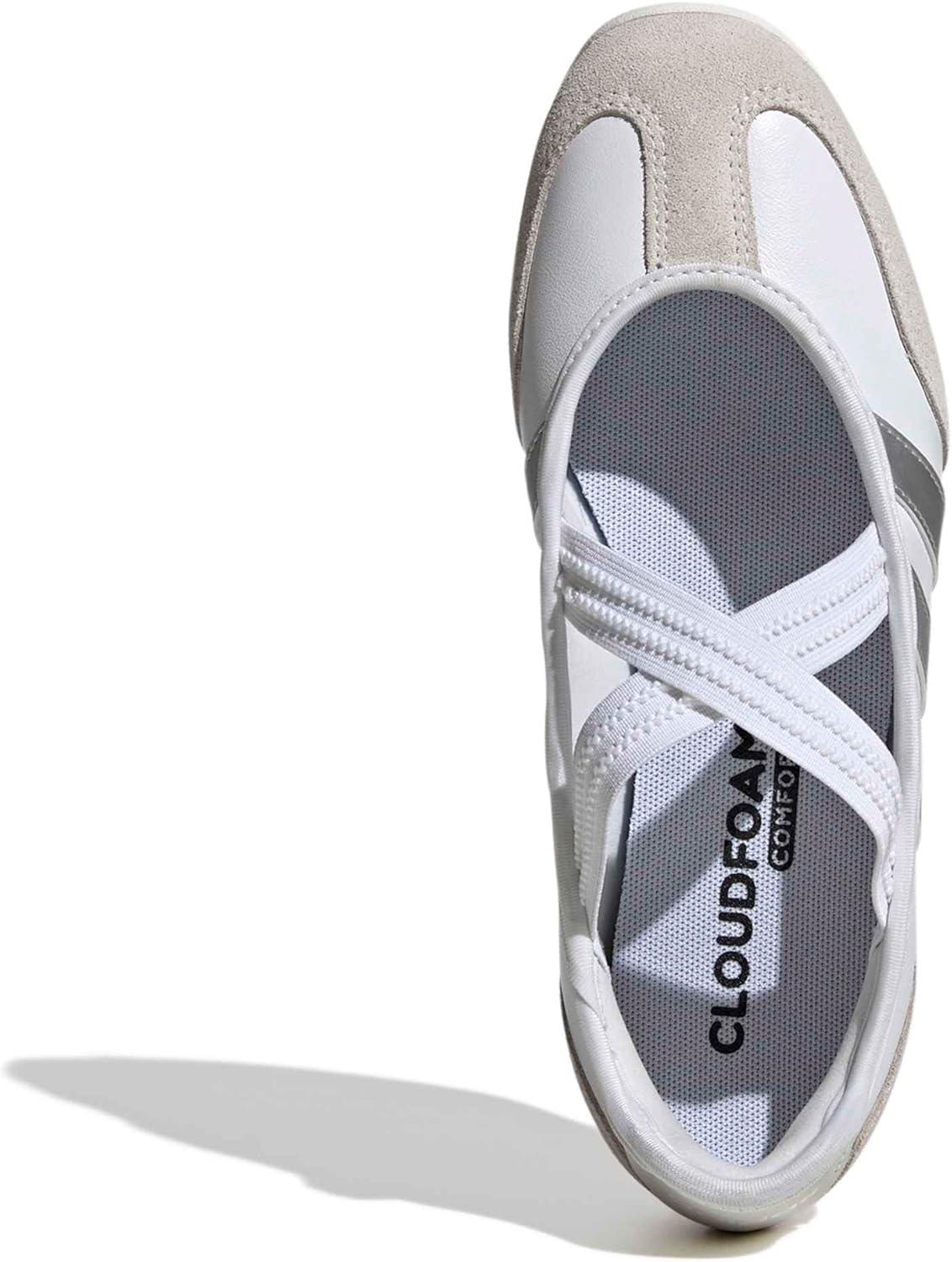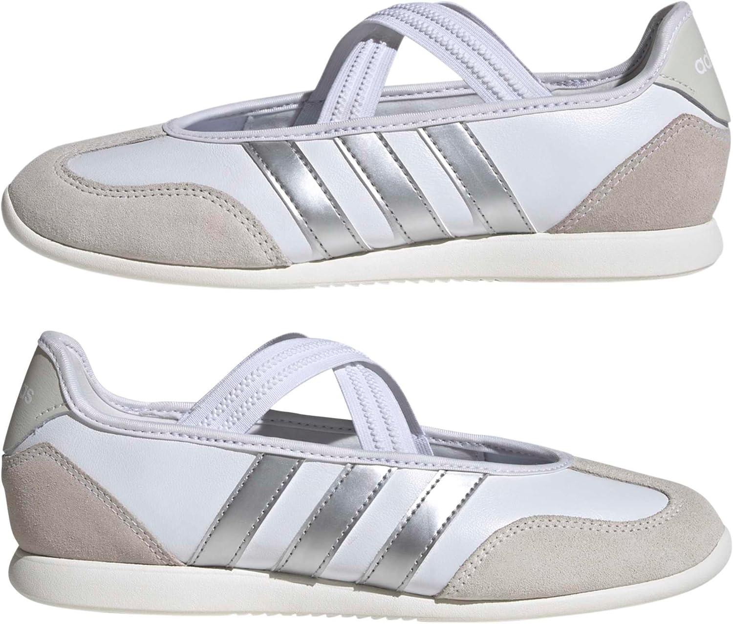 adidas Women’s Barreda Mary Jane Sneaker(White/Silver Metallic/Off White)