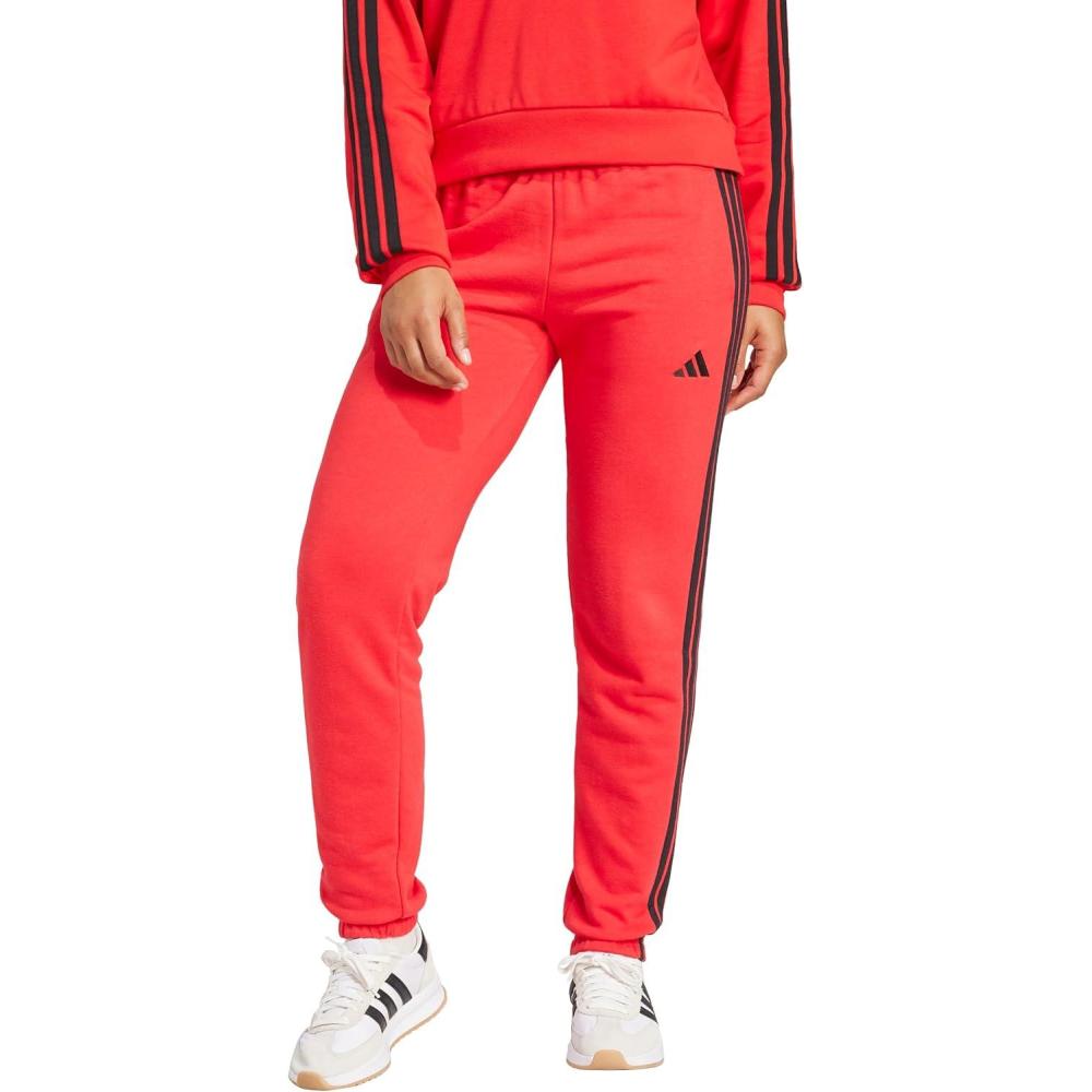 adidas Women’s Essentials 3-Stripes French Terry Cuffed Pants(Pure Ruby/Black)