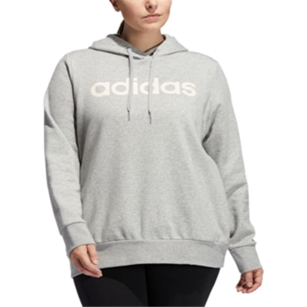 adidas womens Essentials Linear Fleece Hoodie(Medium Grey Heather/Pink Tint)