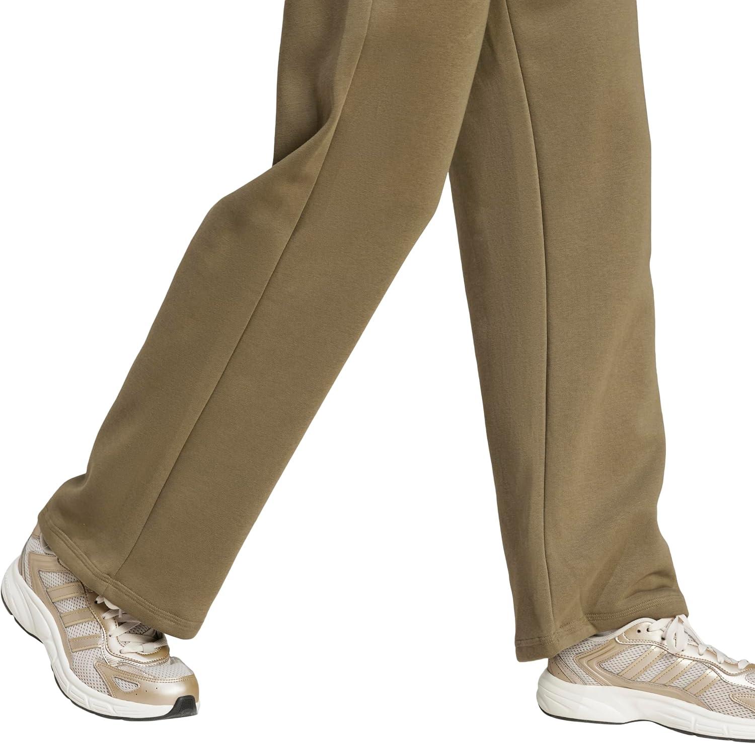 adidas Womens Essentials Small Logo Feel Cozy Open Hem Pant(Olive Strata/White)