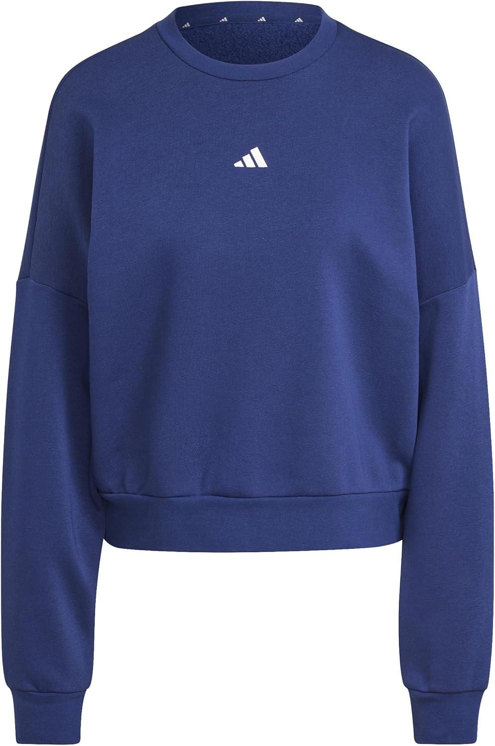 adidas Women’s Essentials Small Logo Feel Cozy Sweatshirt(Dark Blue/White)