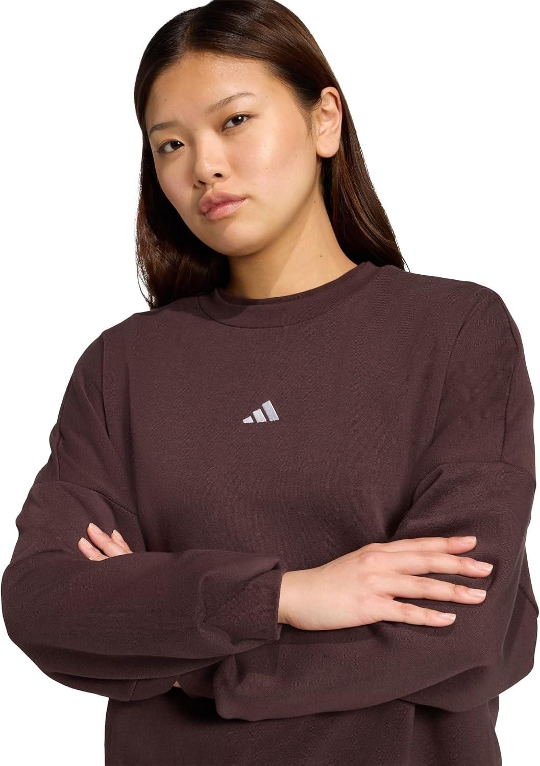 adidas Women’s Essentials Small Logo Feel Cozy Sweatshirt(Shadow Brown/White)