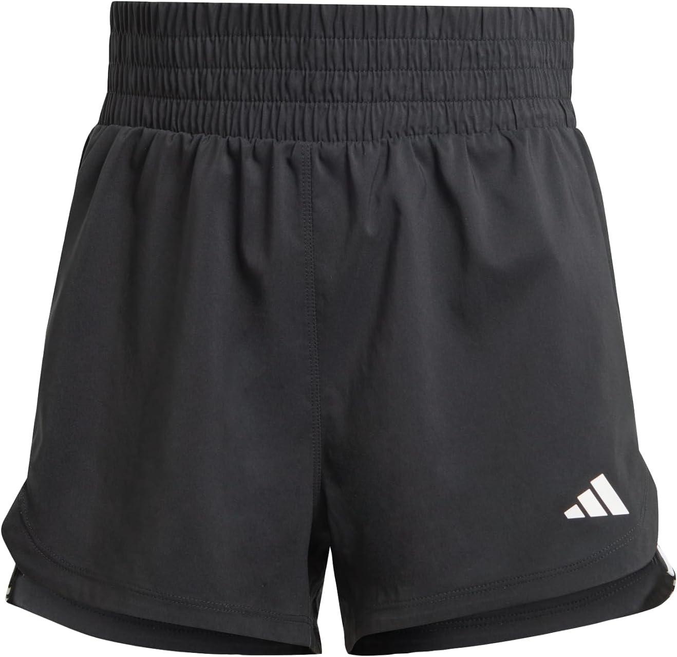 adidas Womens Pacer Training 3-Stripes Woven High-Rise Shorts(Black / White)