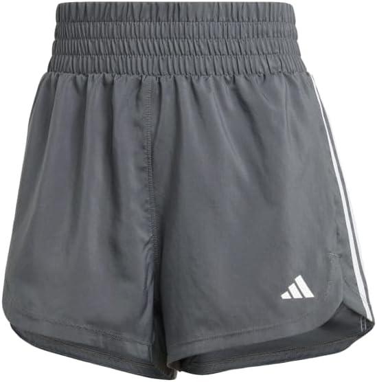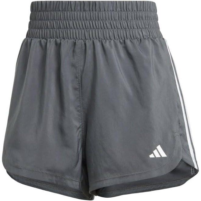 adidas Womens Pacer Training 3-Stripes Woven High-Rise Shorts(Grey Six / White)