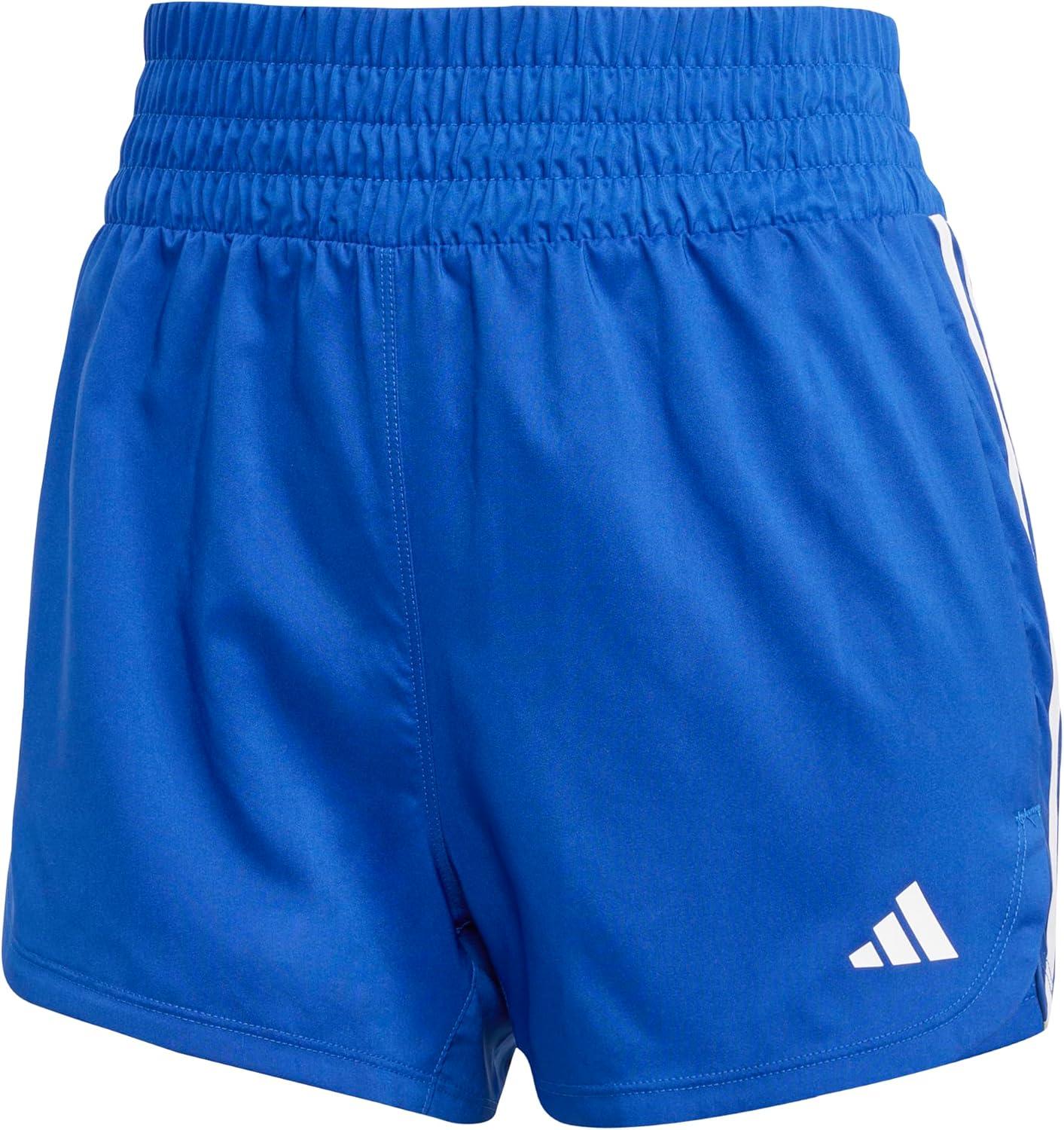 adidas Womens Pacer Training 3-Stripes Woven High-Rise Shorts(Team Royal Blue/White)