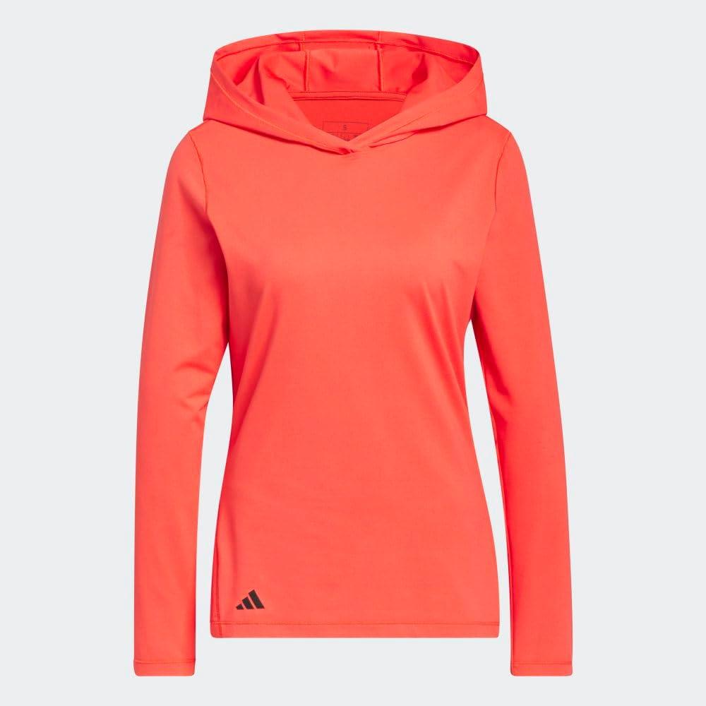This women's adidas golf hoodie is a perfect layer for cool-weather rounds. The brushed fabric has a super-soft feel, and built-in stretch ensures a full range of motion. A curved hem finishes the look. Made with a series of recycled materials, and at least 70% recycled content, this product represents just one of our solutions to help end plastic waste.