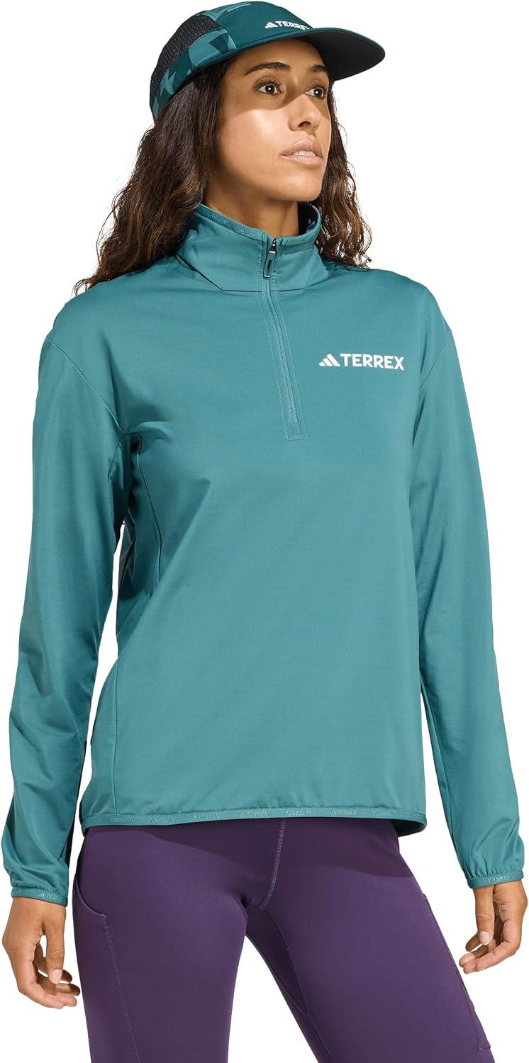 adidas womens Terrex Multi Climawarm Half-zip Tech Fleece Hiking Sweatshirt(Preloved Teal)