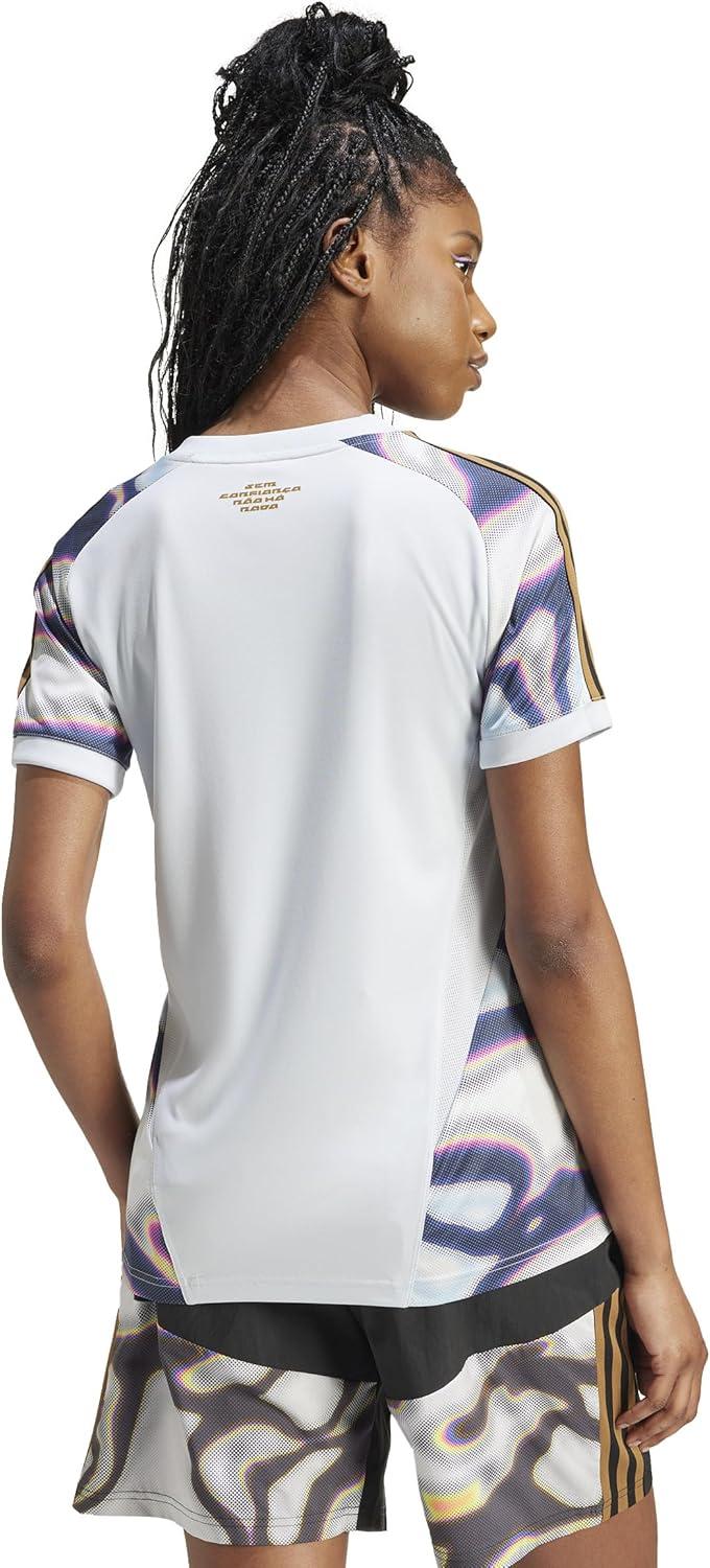 Celebrate Pride and the courage to be your true self in this women's adidas soccer jersey, created in collaboration with Brazilian artist Pabllo Vittar. It's cut with a soft interlock fabric to keep you comfortable, with an iconic ribbed V-shaped neckline for that classic soccer look. It features a bold allover print with a reminder that “Love Unites.”