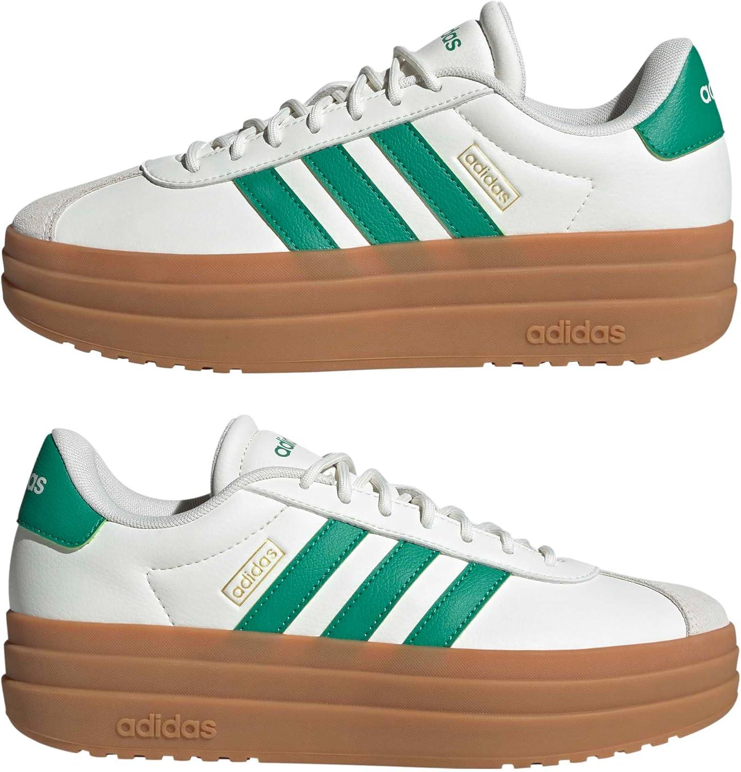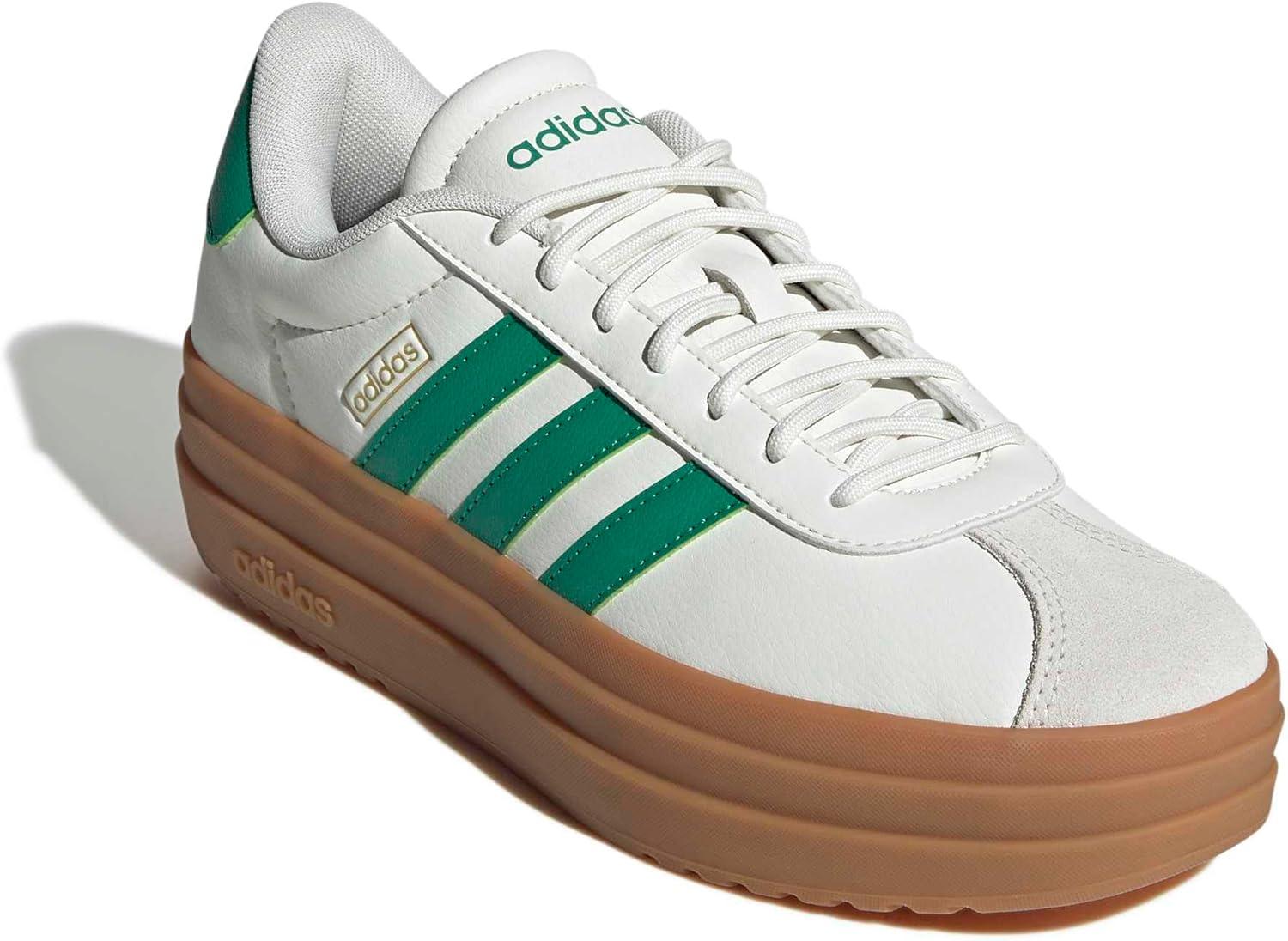 adidas Women’s Vl Court Bold Sneaker(White/Court Green/Gold Metallic)