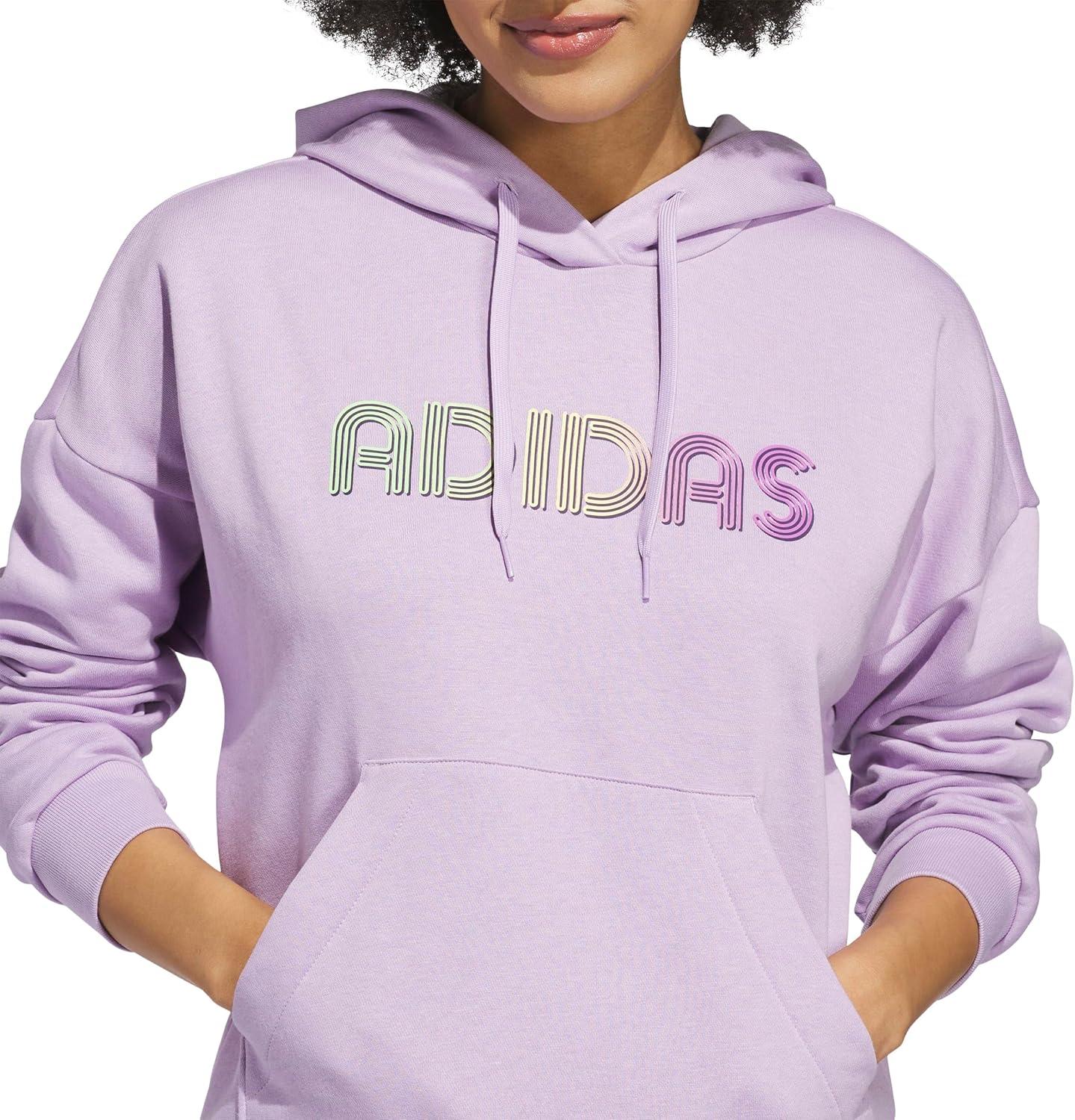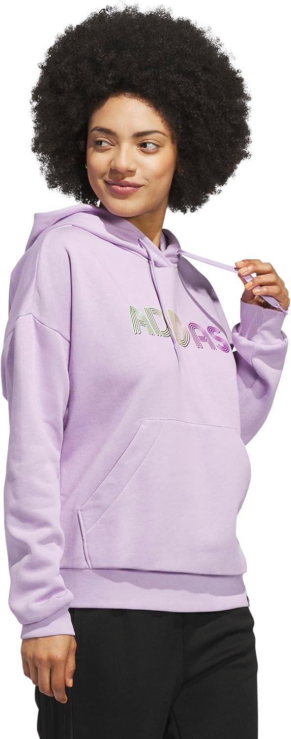 The adidas Wordmark Graphic Hoodie for women offers a clean, versatile design paired with practical features. The standard fit provides a balanced silhouette that's neither too tight nor too loose, ensuring everyday ease. A drawcord-adjustable hood allows for personalized coverage, while the kangaroo pocket delivers functional storage.